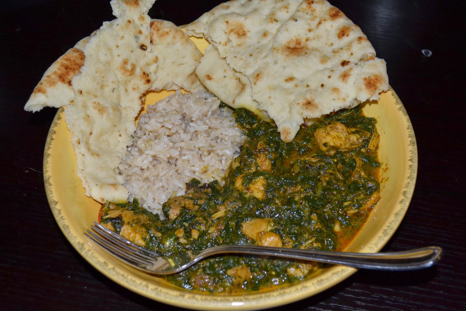 Add in thawed (or fresh - if you're rich) spinach and about half a cup of chicken stock.